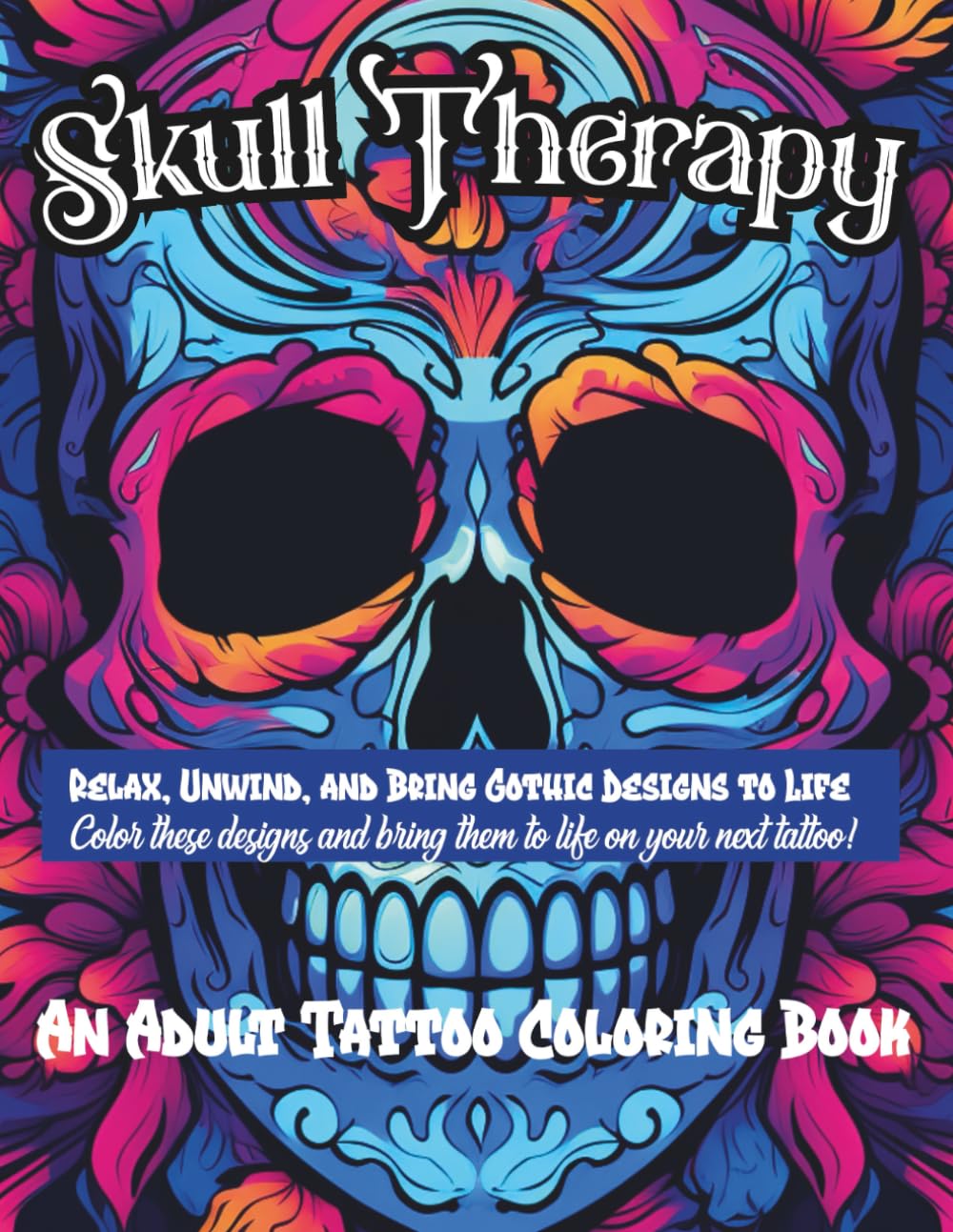 Skull Therapy is a romantic gothic adult coloring book for tattoo lovers, skull art enthusiasts, and anyone seeking creative stress relief.