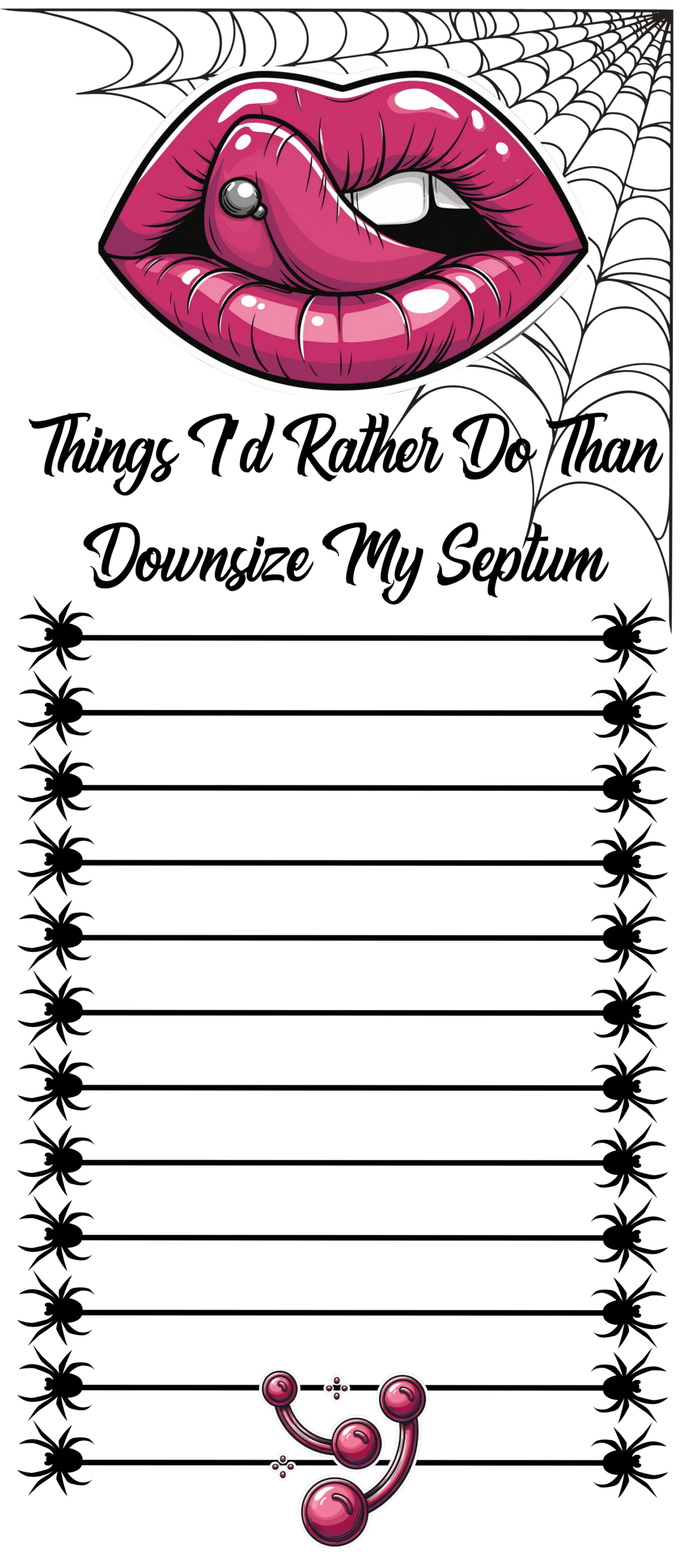 Part of the Naughty Notes collection, this 3.5″ x 8″ notepad is crafted with 30 sheets of 98 bright, 32 LB / 120 GSM paper. Handmade in the USA from concept to product.